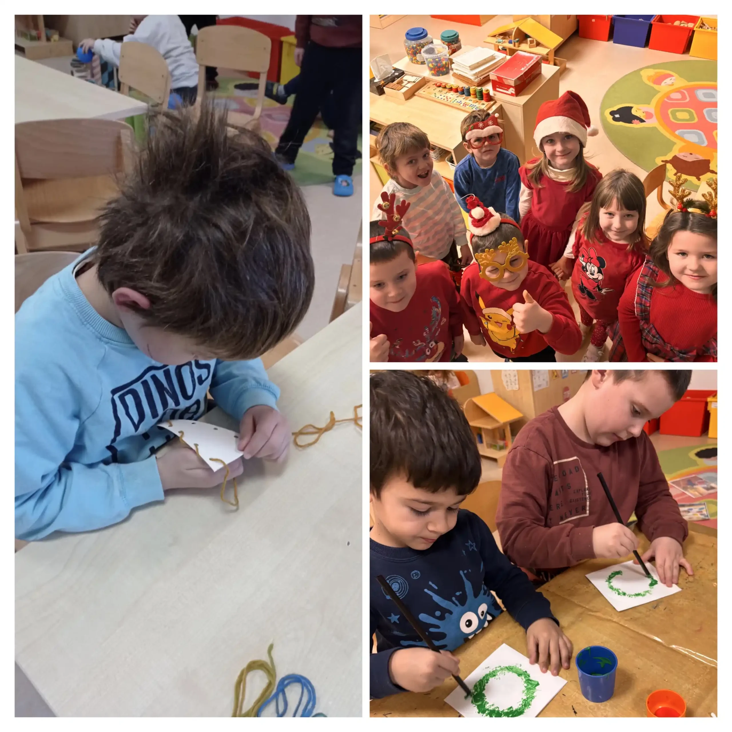 Tijekom mjeseca izrađivali smo božićne čestitke i ukrase kojima smo ukrasili naš prostor, a godinu smo zaključili veselim božićnim druženjem i malim partyjem u skupini.