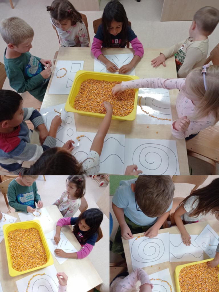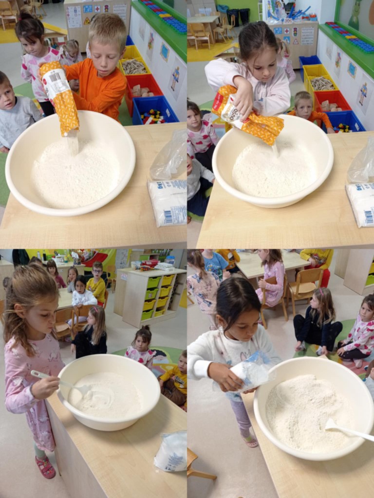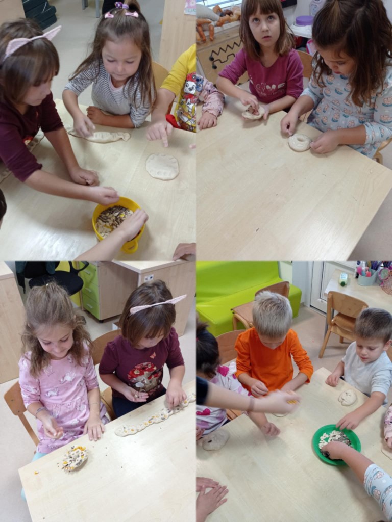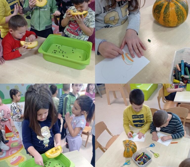 Djeca su kroz istraživačko-spoznajne, likovne, glazbene i aktivnosti raznovrsnog izražavanja i stvaranja upoznala proces od zrna do kruha. Postali smo mali pekari te od slanog tijesta napravili prava remek djela pekarskih proizvoda. Sa istraživačkim aktivnostima jesenskih plodova nastavili smo i u listopadu. Djeca su imala mogućnost stjecati iskustva dodirom, njuhom i okusom i to jabuke i bundeve. Na tu temu proveli smo likovne i kreativne aktivnosti različitim materijalima i sredstvima. Sredinom mjeseca započeli smo s obilježavanjem Mjeseca hrvatske knjige i to na način da djeca donose od doma svoje omiljene slikovnice, priče, koje onda zajedno čitamo u vrtiću.