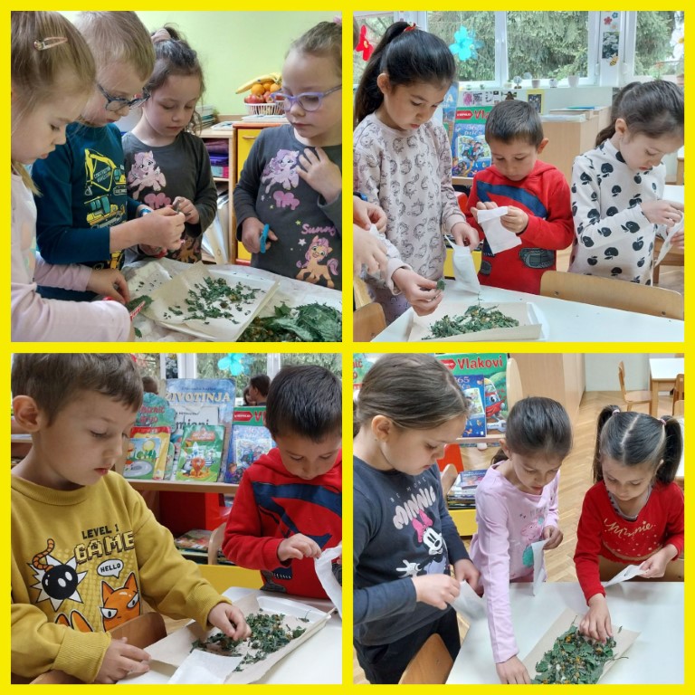 🌿 Brali smo koprivu i pažljivo je sušili kako bismo napravili zdravi čaj. Također smo sakupljali borove iglice za sirup – učili smo kako priroda nudi mnoge korisne darove!